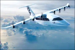 Bereits am 29. 11 2023 machte der gemeinsam von Daher, Safran und Airbus entwickelte Demonstrator Eco Pulse mit verteilten Antrieben seinen Erstflug. Zuvor ist noch nie ein Flugzeug (ausgenommen einer AN-2 und des Electra Goldfinch) mit einem System dieser Art in die Luft gegangen. Der Demonstrator auf Basis einer TBM 950 wurde da- zu zusätzlich mit einem Turbogene- rator und sechs Propellern von Saf- ran, die entlang der Flügel verteilt sind, ausgestattet. Die aktivierten Propeller wurden über eine Puffer- batterie gespeist. Zweck des De- monstrators ist die Funktionstüch-