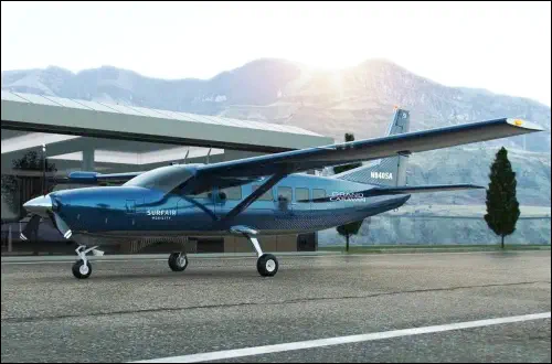 US-Haltergemeinschaft will zusammen mit Textron Caravans auf E-Antrieb umrüsten Surf Air Mobility ist die größte Halterfluggesellschaft in den USA, mit der man sich bereits mit 2000 Dollar monatlich registrieren kann, um deren Dienste zu nutzen. Um umweltfreundlicher zu fliegen, möchte man allerdings nicht lange warten, bis entsprechende Flugzeuge am Markt erhält- lich sind und strebt dazu die gemeinsame Umrüstung mit Textron auf eine Hybridversion der Caravan mittels eines Brennstoffzellenantriebs mit Elektromotor an. Dazu wurden bei Textron 20 Gran Caravan EX bestellt, deren Gesamtstückzahl noch auf 100 sowie weitere 50 Maschinen erwei- tert werden kann. Die Auslieferung der Cessna Grand Caravan EX soll im ersten Halbjahr 2024 beginnen. Im Jahr 2026 wird eine ergänzende Typ- Zulassung durch die FAA angestrebt. Surf Air Mobility geht davon aus, dass das hybride Elektroflugzeug Cessna Grand Caravan EX im eigenen Netzwerk eingesetzt wird, um mehr US-Airports mit direkten Kurzstreckendiensten zu verbinden. Surf Air Mobility wird zudem der exklusive Lief- erant von Textron Aviation für bestimmte batterieelektrische- und hybride Antriebstechnologien für die Grand Caravan sein. www.surfaircom